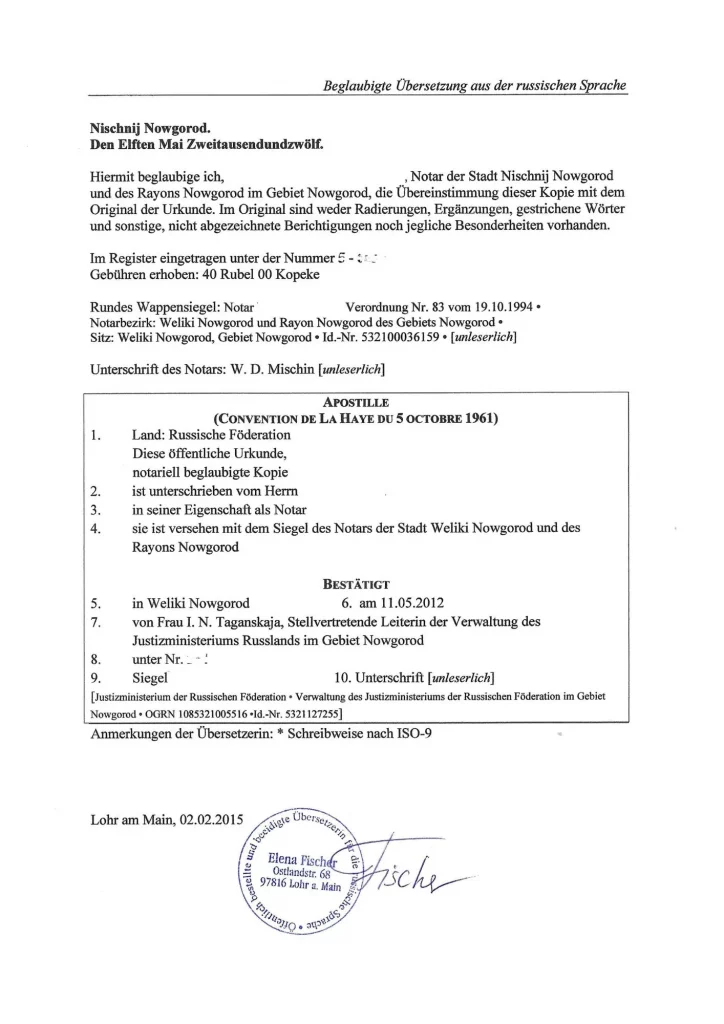 Beglaubigte Übersetzung